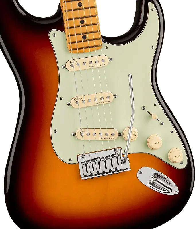 Бесшумные звукосниматели Ultra Noiseless Vintage StratБесшумные звукосниматели Fender 5-го поколения, называемые Ultra Бесшумный, вы получите все шлепающее, шарлатанское совершенство Strat без какого-либо раздражающего шума. Серьезно — подключите его к Plexi и запустите. Звукосниматели Ultra Noiseless Vintage Strat сохраняют характер и легкость в шуме. American Ultra Strat имеет плавный 5-позиционный переключатель, который дает вам множество тонов на выбор. Когда вы включаете переключатель S-1 на ручке громкости, вы можете добавить тембры положения грифа в положения 1 и 2 — положение 1 дает вам бриджевые и нековые звукосниматели вместе, а положение 2 дает вам все три звукоснимателя одновременно.