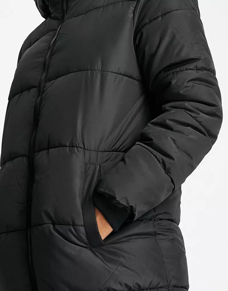 Черное длинное пуховик с капюшоном Pieces