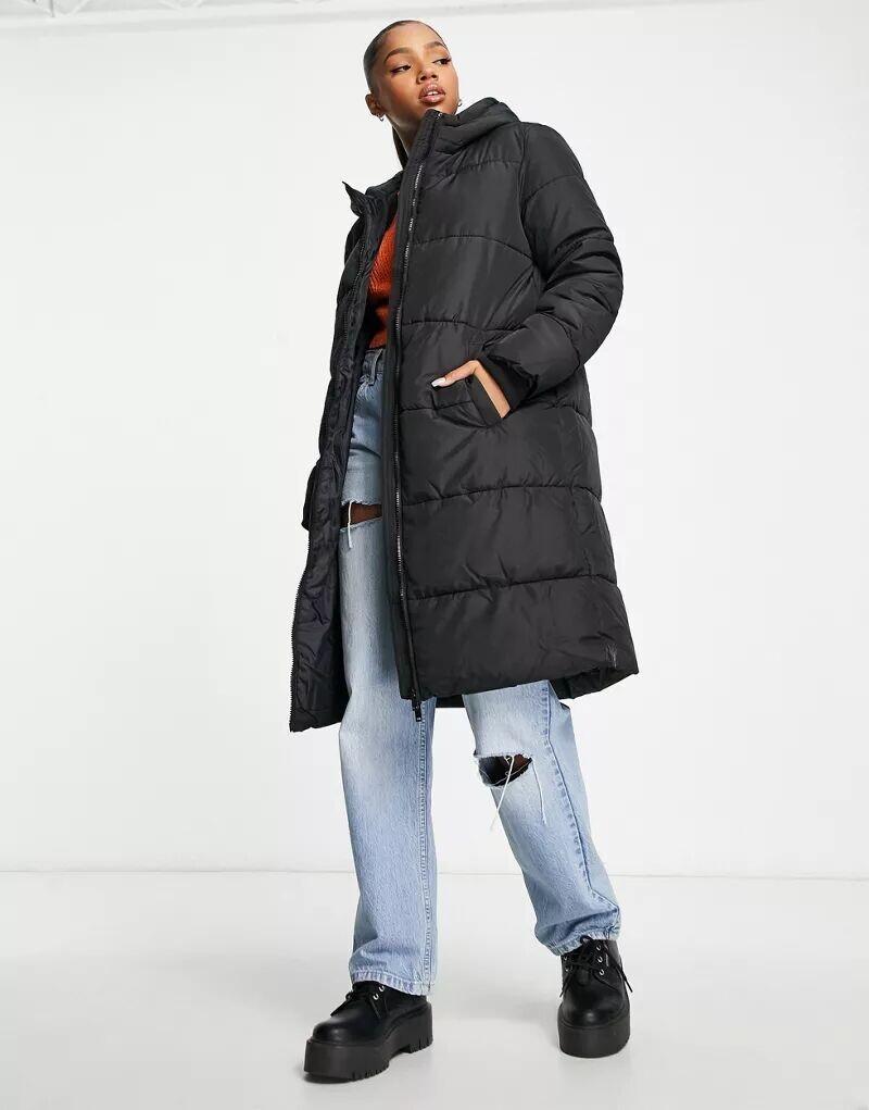 Черное длинное пуховик с капюшоном Pieces 9 891₽