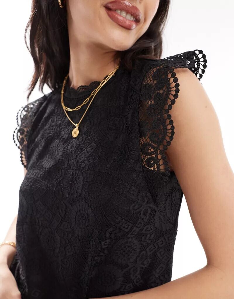 Черный кружевной топ без рукавов с высоким воротником Pieces