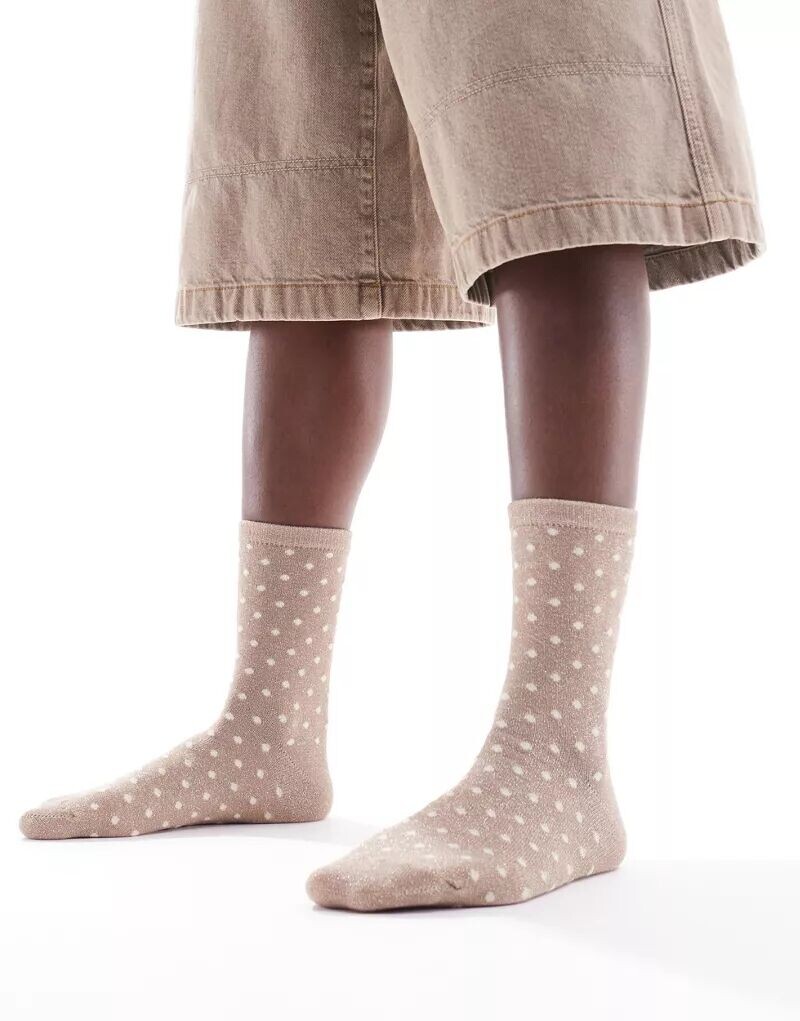 Piece – носки с блестками в бежевый горошек Pieces 1 522₽