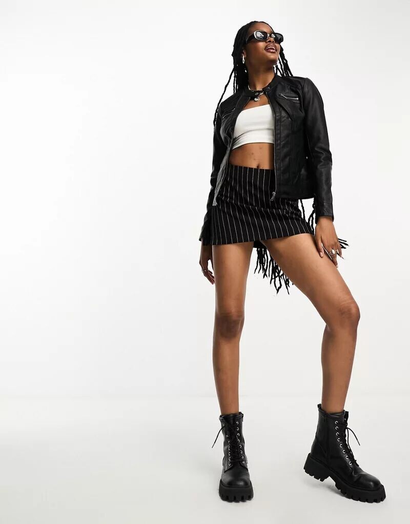 Черная мотоциклетная куртка из искусственной кожи Only 7 623₽