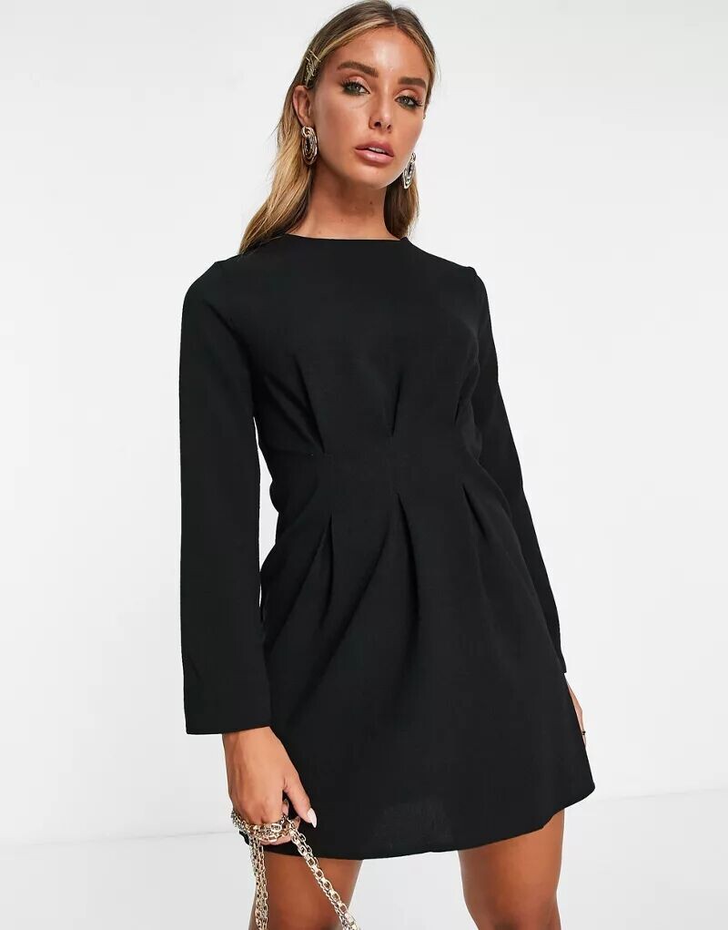 Черное платье мини с длинными рукавами и присборенной талией ASOS