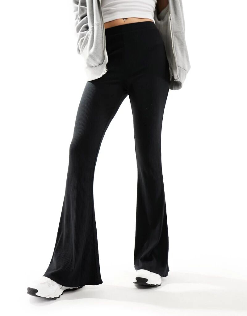 Черные расклешенные брюки в рубчик с рюшами по низу ASOS