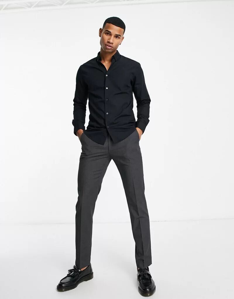 Only & Sons - Черная узкая рубашка из эластичного поплина 4 542₽