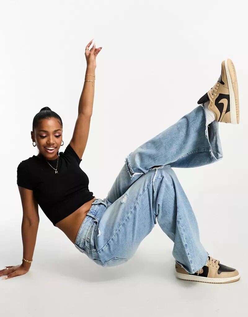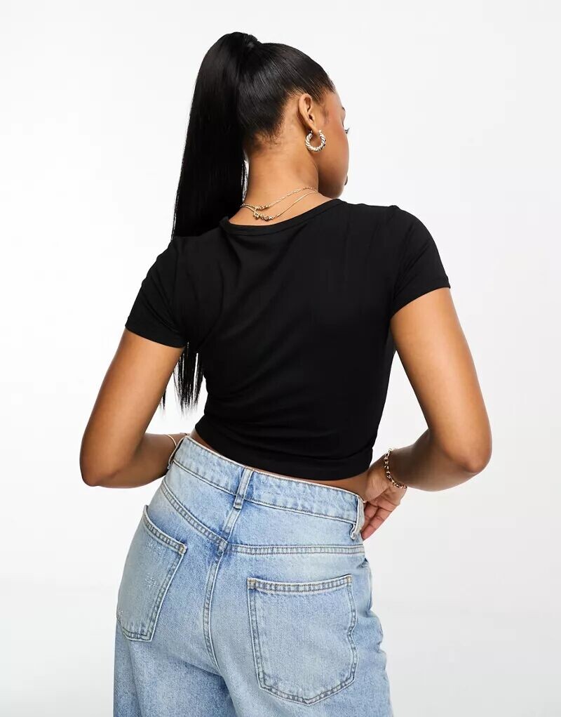 Черная приталенная футболка Monki с эффектом потертости 2 122₽