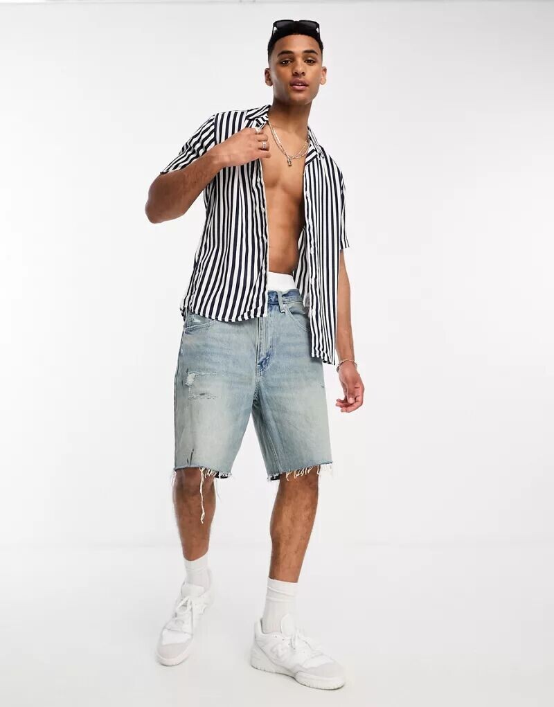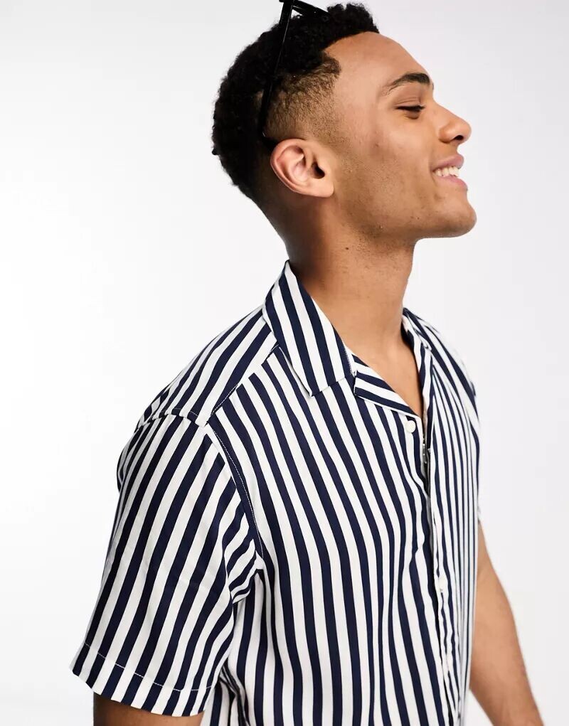 Темно-синяя рубашка с лацканами в полоску Only & Sons