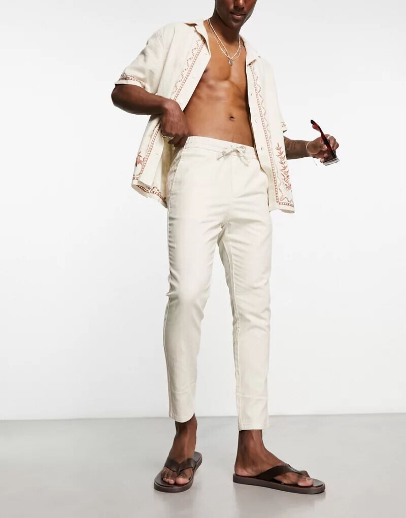 Бежевые брюки из смесового льна Only & Sons