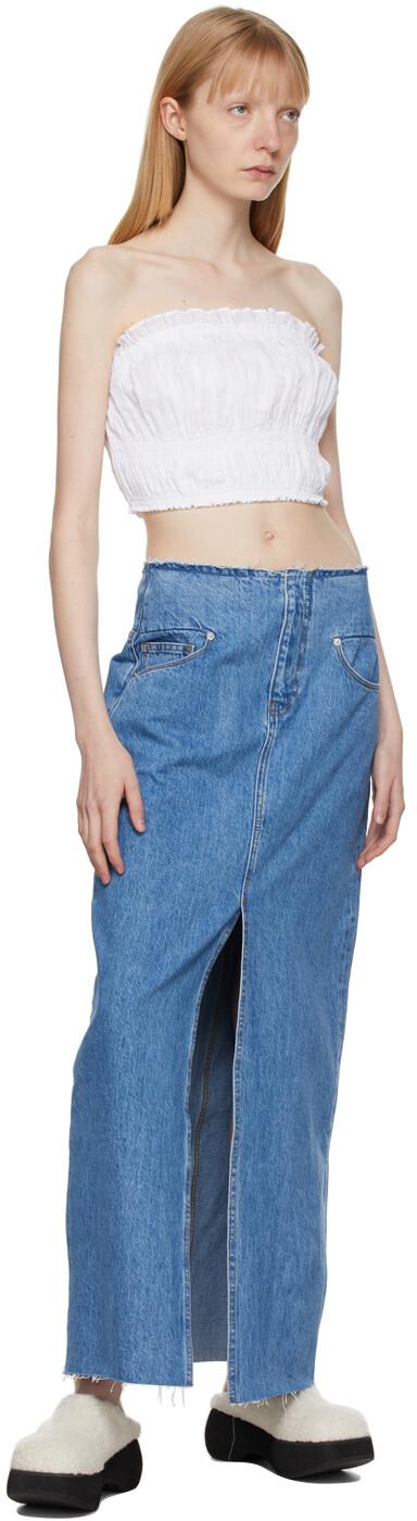 Белая присборенная майка без бретелек FRAME