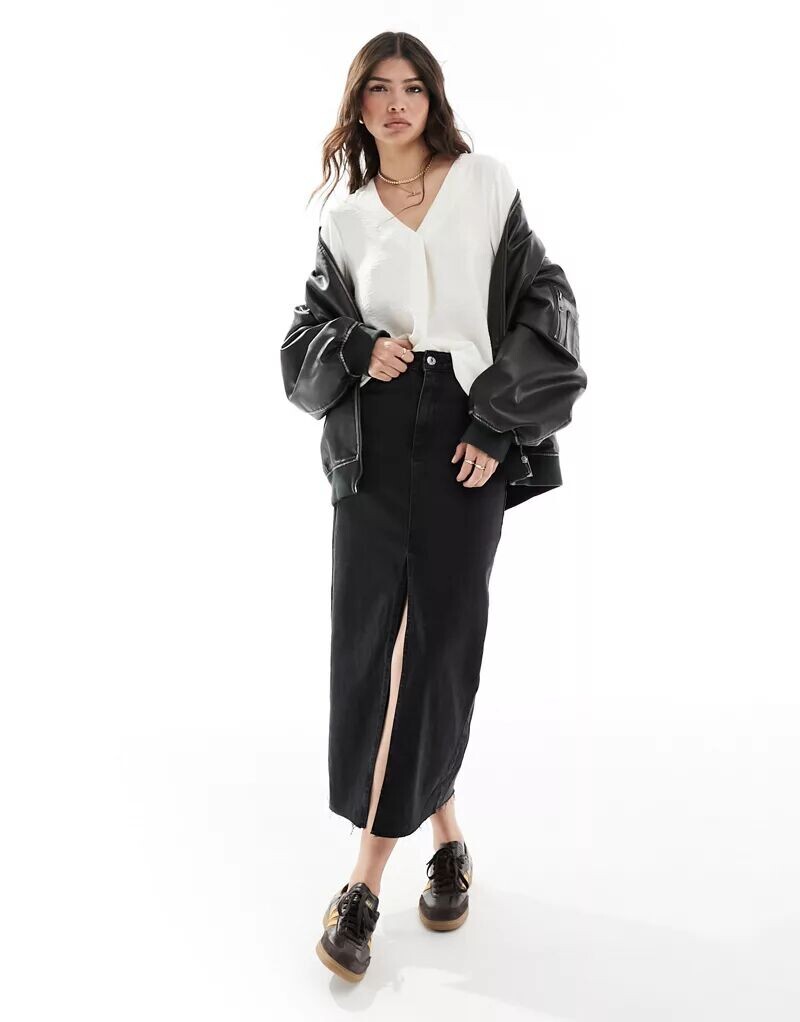 Белая блузка с V-образным вырезом JDY