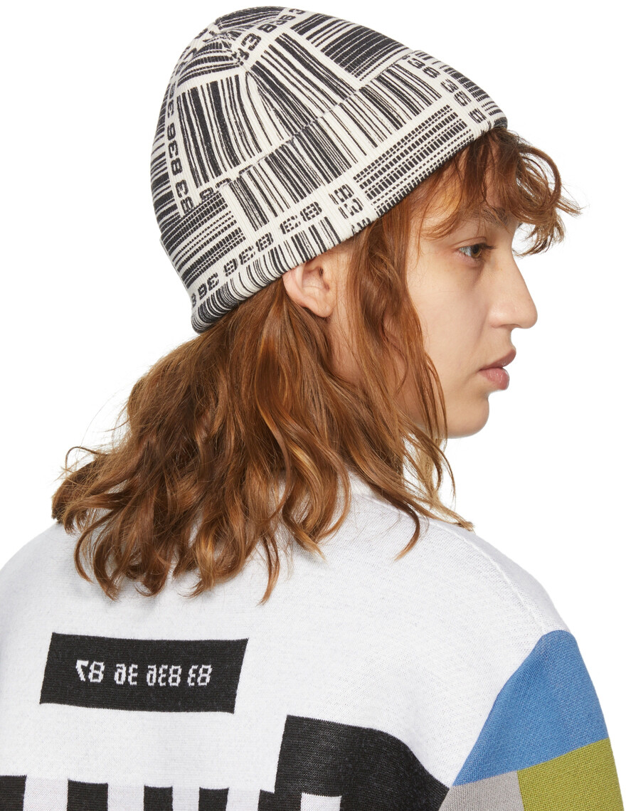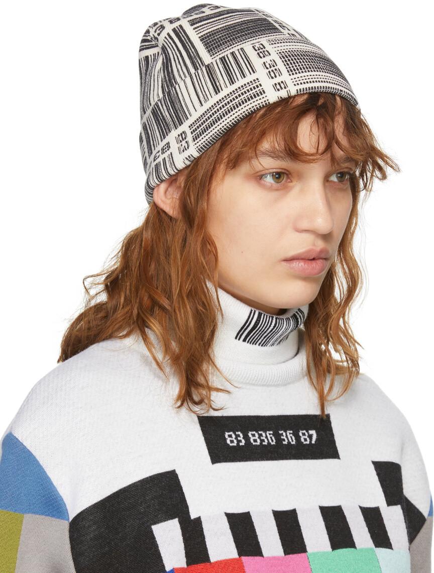 Белая шапка-бини со штрих-кодом и монограммой VTMNTS