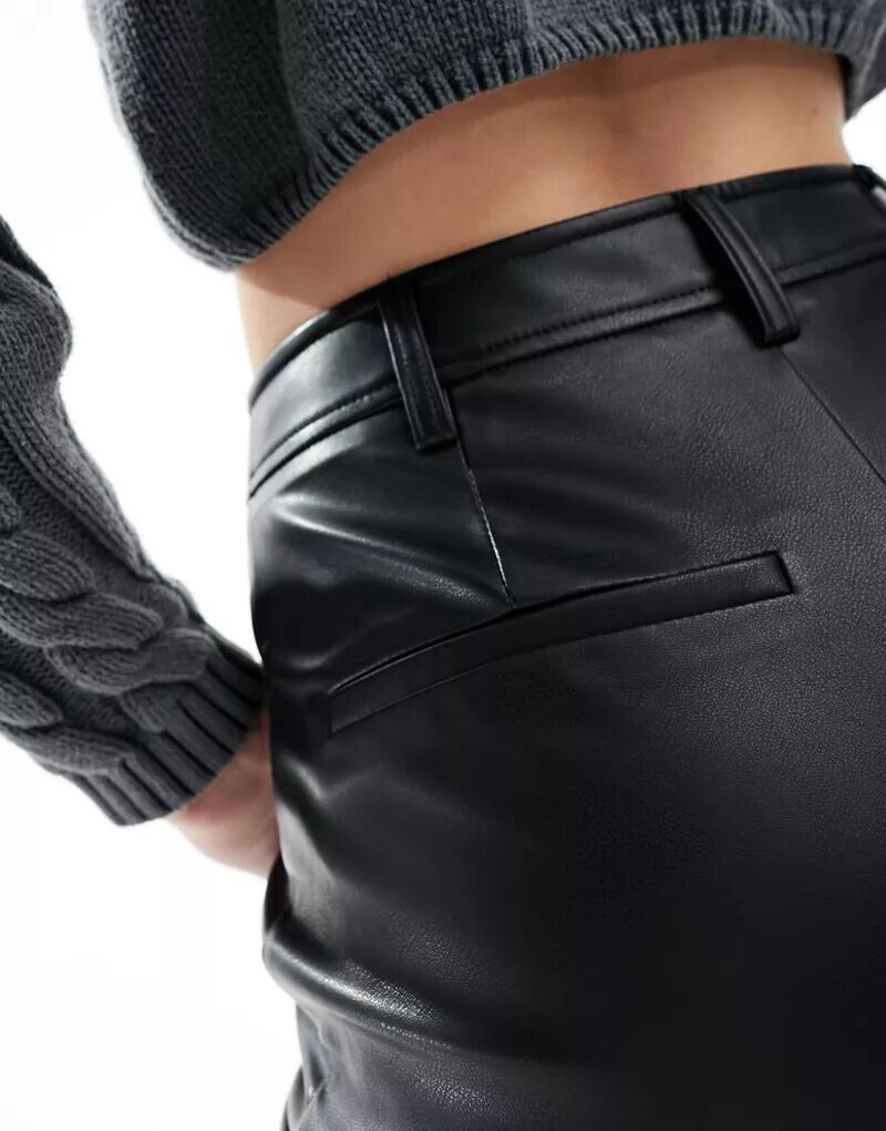 Черные прямые брюки из искусственной кожи ASOS Tall