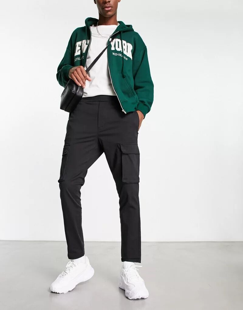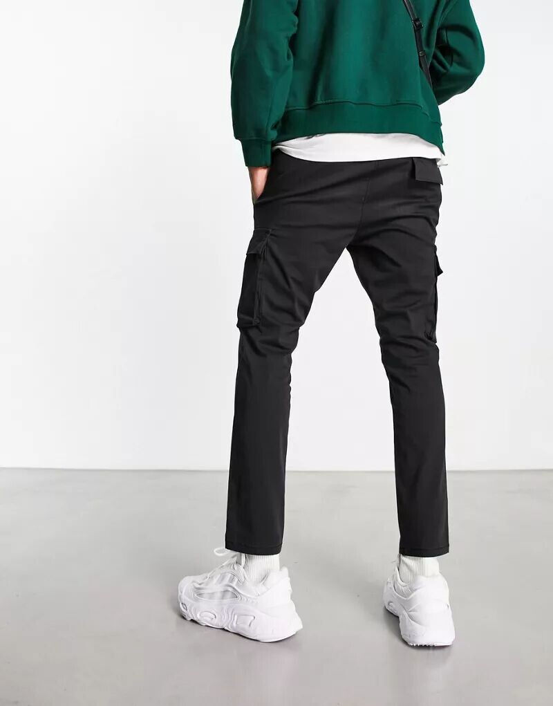 Черные зауженные брюки карго с эластичным поясом Only & Sons