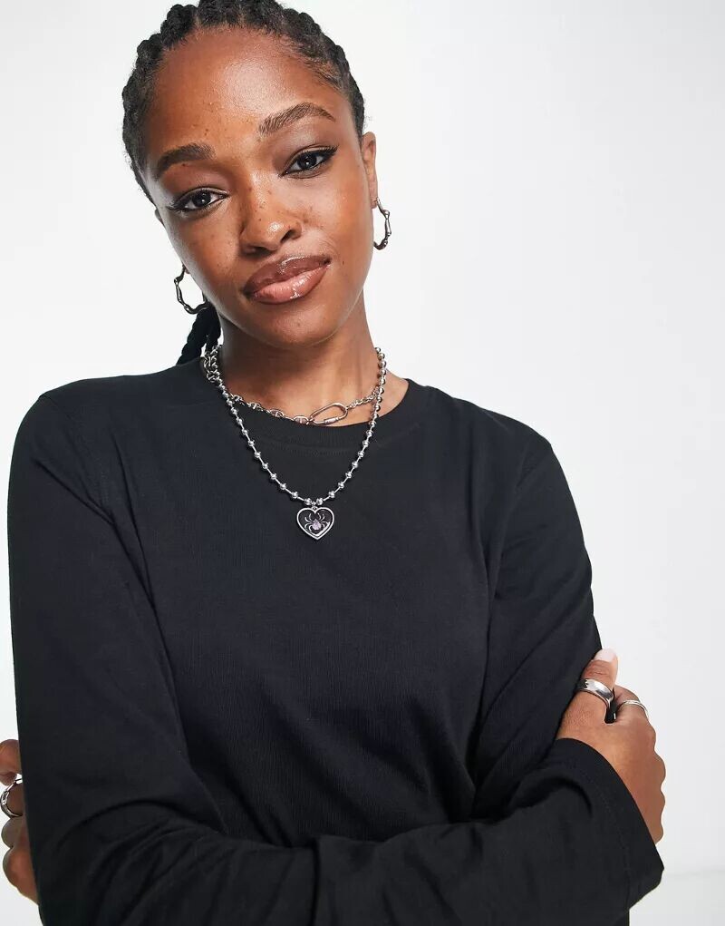 Черный топ повседневного кроя с длинными рукавами Weekday Essence