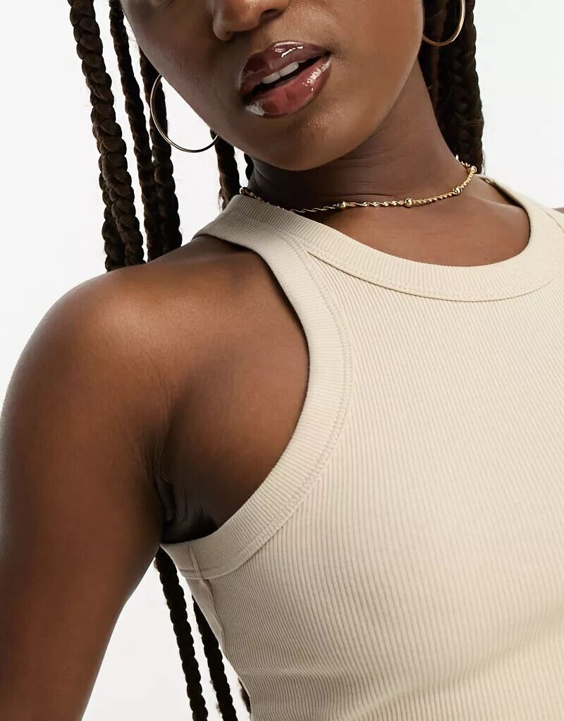 Бежевая майка Monki в рубчик со спиной-борцовкой