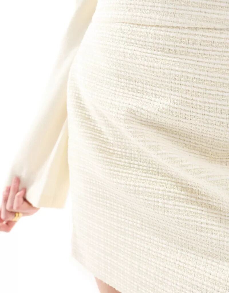 Кремовая мини-юбка букле с разрезами ASOS