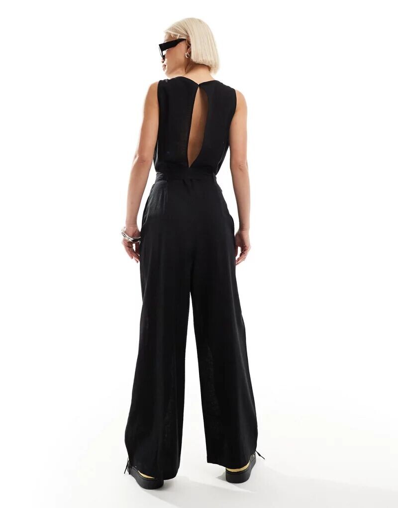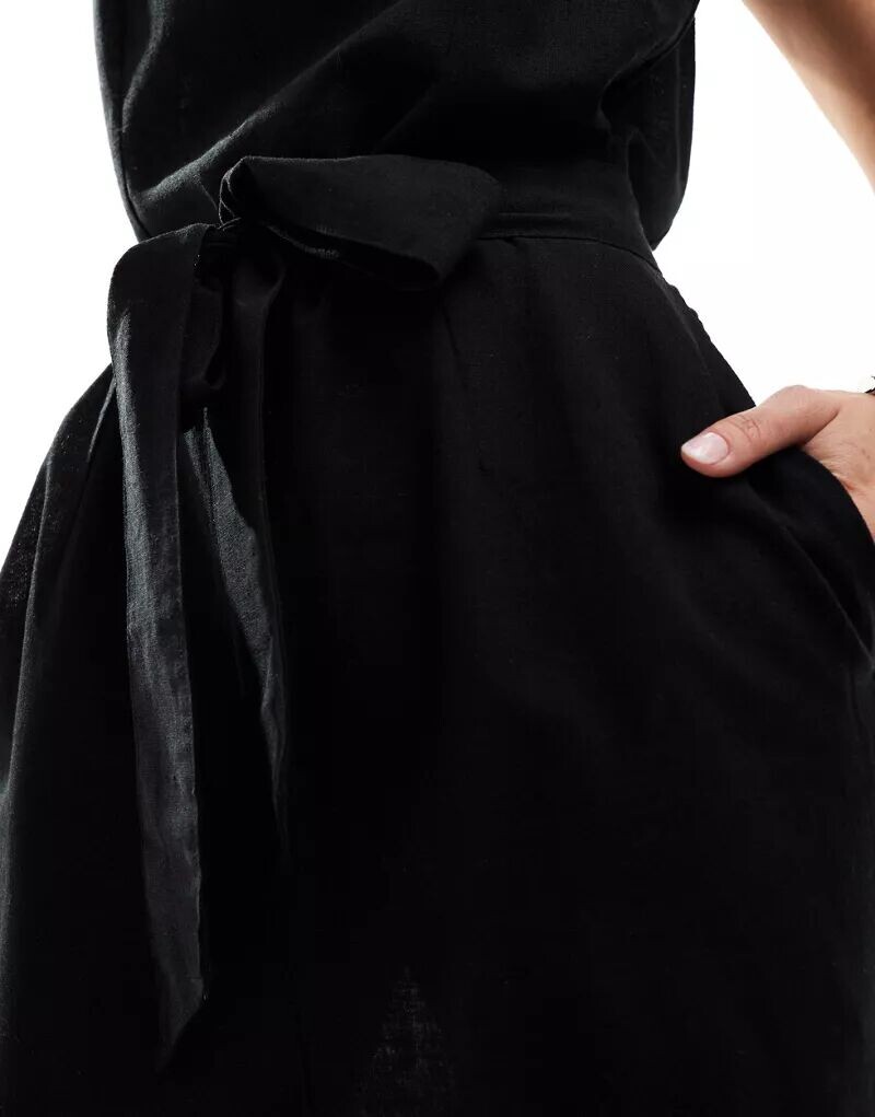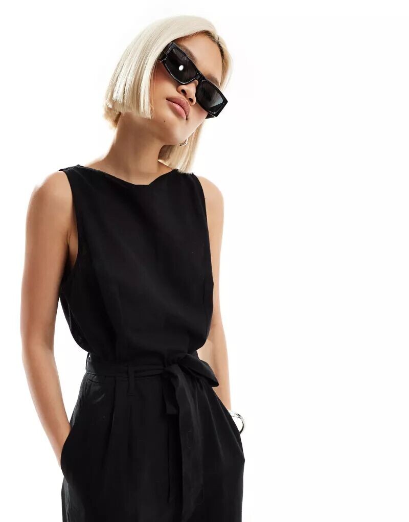 Черный льняной комбинезон без рукавов с поясом Monki