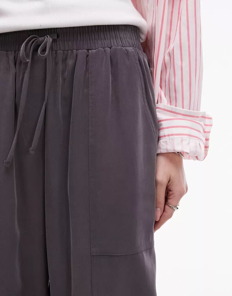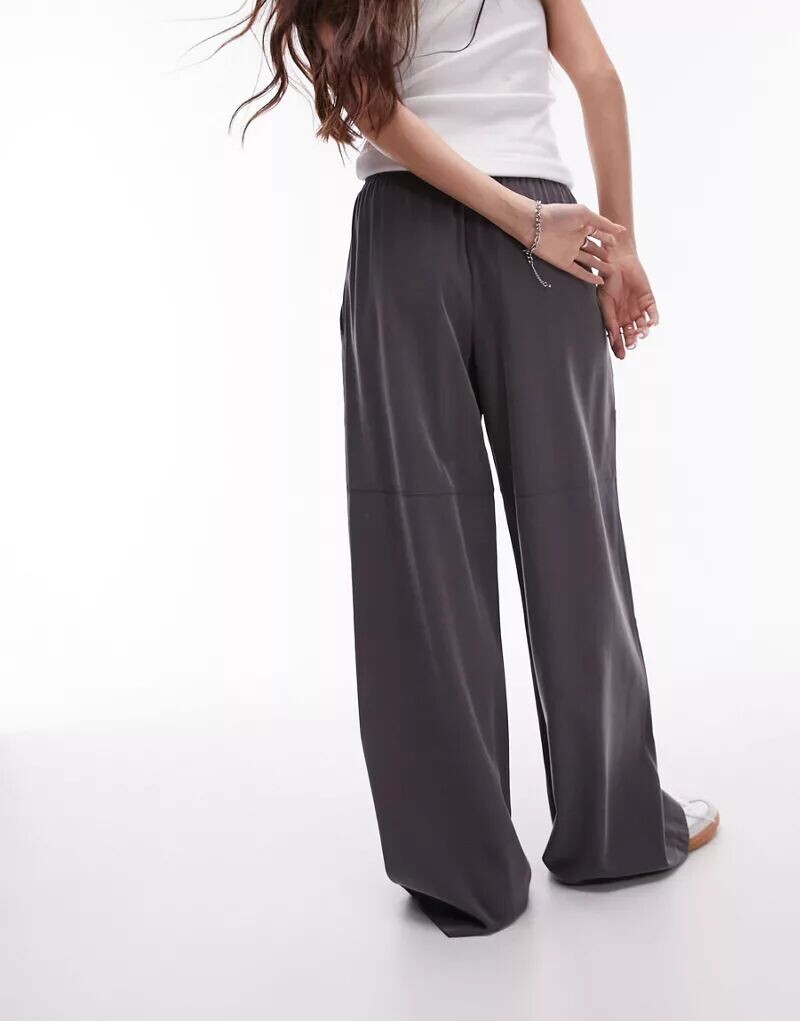 Темно-серые широкие брюки без застежки Topshop 4 502₽