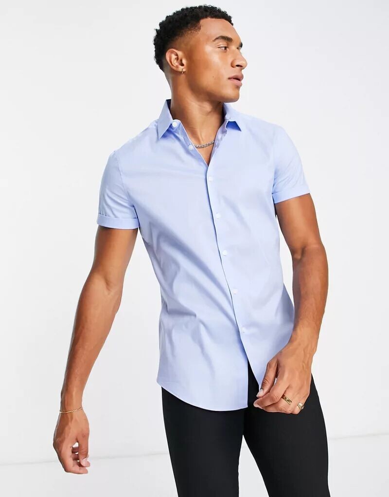 Синяя узкая эластичная рубашка ASOS 2 432₽