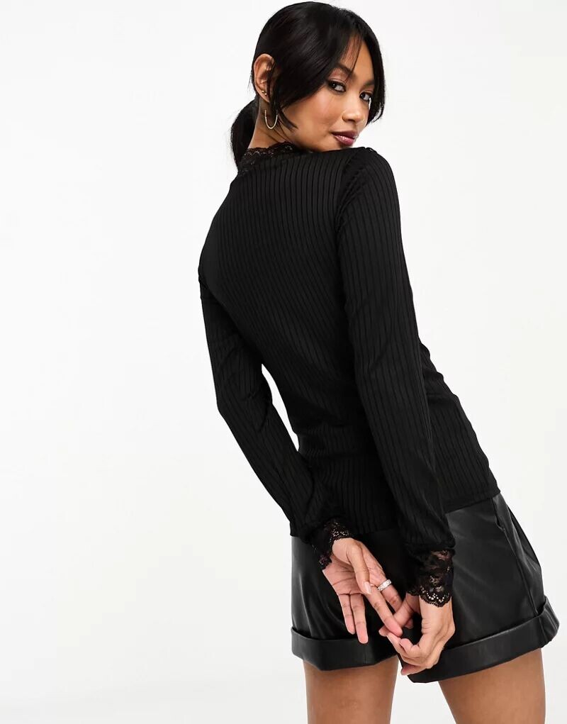 Черный топ с длинными рукавами и кружевной вставкой Y.A.S