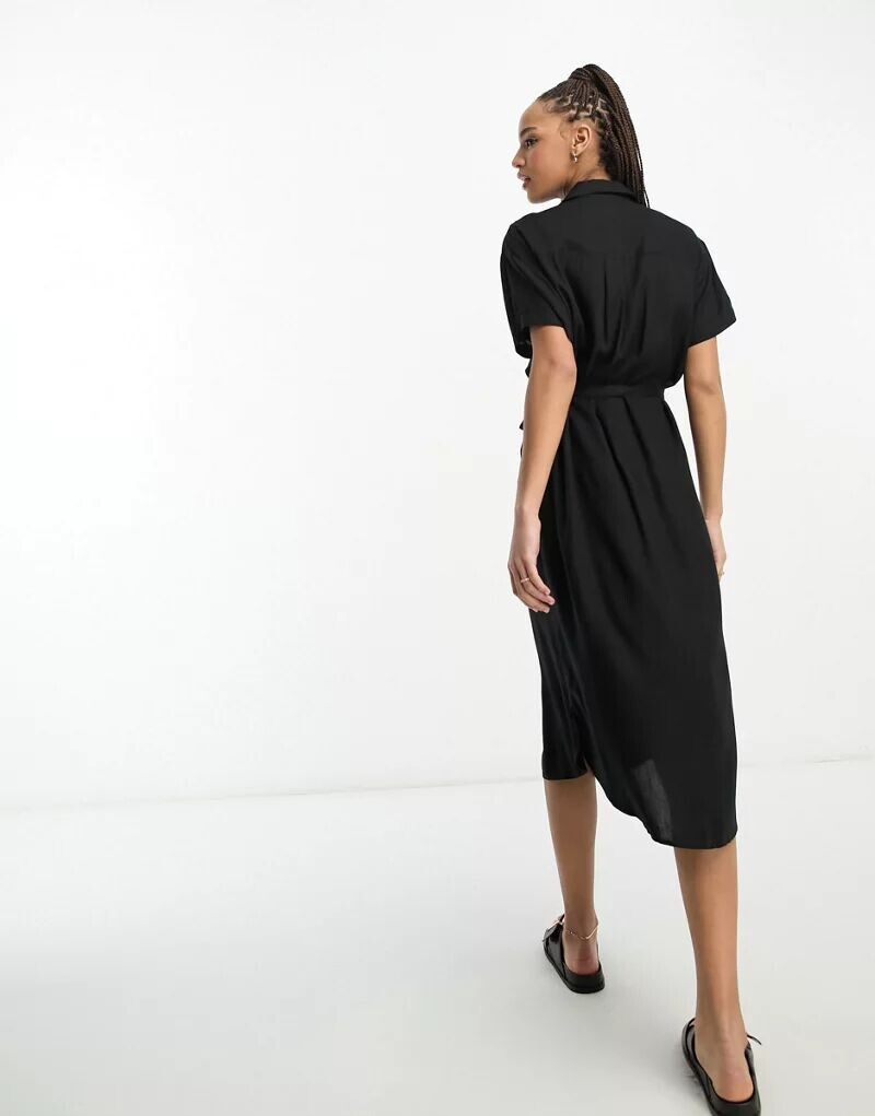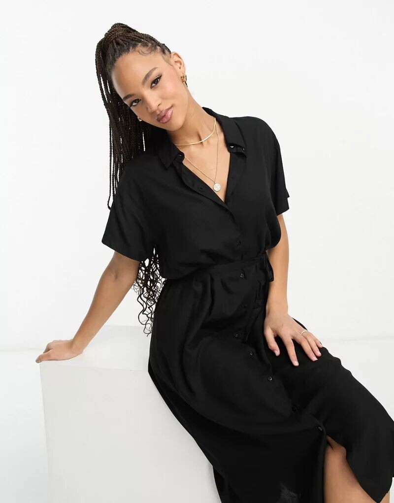 Черное платье-рубашка миди Vero Moda с поясом 3 420₽