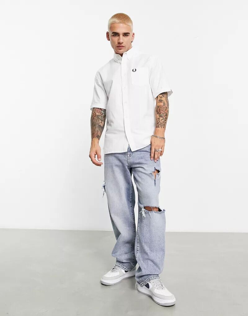 Белая оксфордская рубашка с короткими рукавами Fred Perry