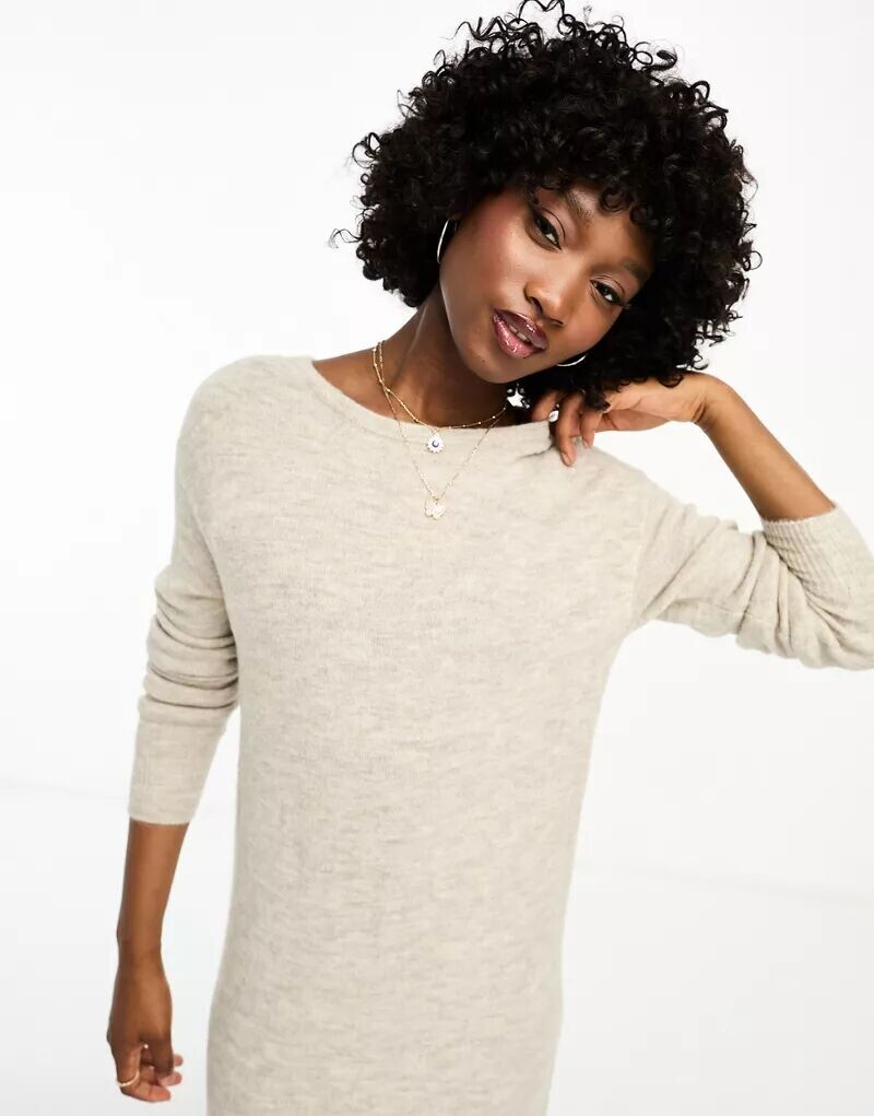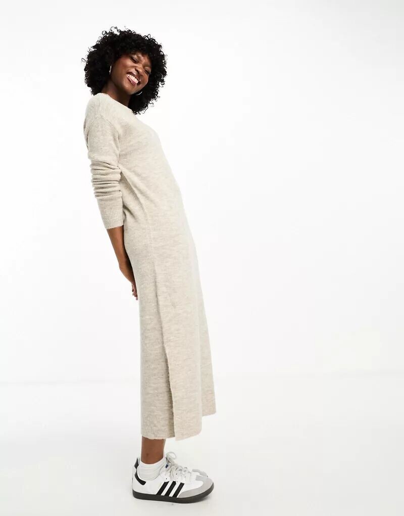 Кремово-белое вязаное платье-свитер миди Vero Moda