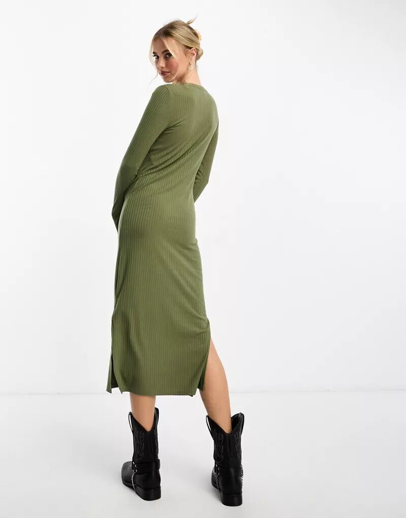 Приталенное платье миди цвета хаки с вырезом лодочкой Pieces