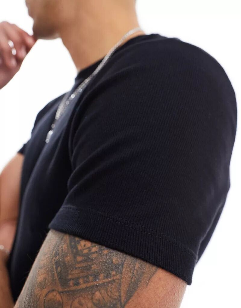 Черная приталенная футболка в рубчик ASOS 2 022₽