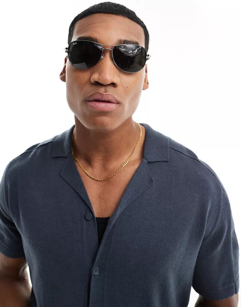 Черные квадратные металлические солнцезащитные очки Ray-Ban