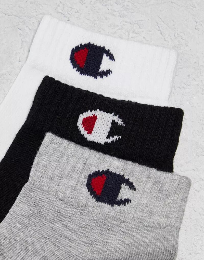Набор из трех носков Champion в сером, белом и черном цветах
