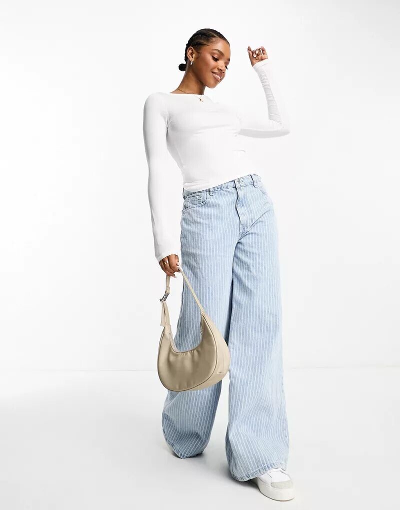 Белый топ с длинными рукавами и вырезом-лодочкой Monkey Monki