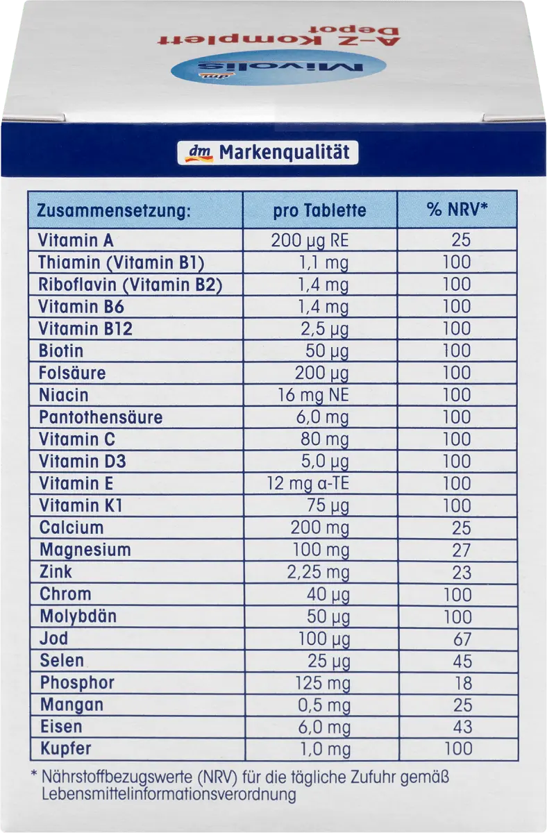 Точное название продукта: Биологически активная добавка с витаминами и минералами, фосфатом кальция, оксидом магния, наполнителем гидроксипропилметилцеллюлозой, карбонатом кальция, L-аскорбиновой кислотой. кислота (витамин С), мальтодекстрин, наполнитель микрокристаллическая целлюлоза, DL-α-токоферилацетат (витамин Е), фумарат железа, никотинамид, D-пантотенат кальция, цитрат цинка, антислеживатель, магниевые соли жирных кислот, покрывающий агент гидроксипропилцеллюлоза , сульфат меди, гидрохлорид пиридоксина (витамин В6), красители оксиды и гидроксиды железа, сульфат марганца, рибофлавин (витамин В2), мононитрат тиамина (витамин В1), антислеживатель диоксид кремния, птероилмоноглутаминовая кислота (фолиевая кислота), хром ( III) хлорид, ретинилацетат (витамин А), йодат калия, молибдат натрия, филлохинон (витамин К), D-биотин, селенит натрия, холекальциферол (витамин D3), цианокобаламин (витамин B12).