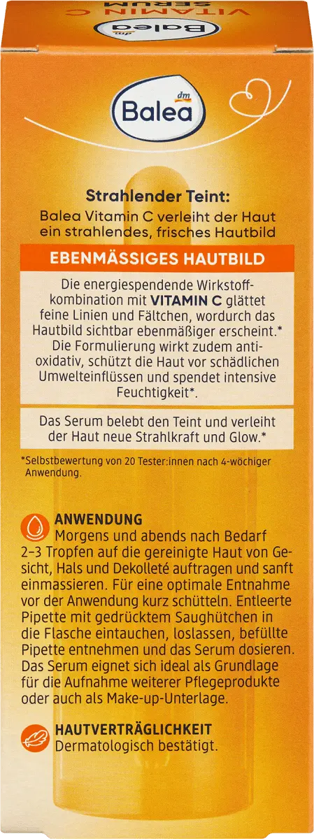 Наносить по 2-3 капли на очищенную кожу лица, шеи и декольте утром и вечером. по мере необходимости и аккуратно массируйте. Для оптимального удаления слегка встряхните перед использованием. Погрузить пустую пипетку с прижатой присоской во флакон, отпустить, погрузить заполненную пипетку с прижатой присоской во флакон, отпустить, вынуть наполненную пипетку и дозировать сыворотку. Сыворотка идеальна в качестве основы для добавления других средств по уходу или в качестве базы под макияж.