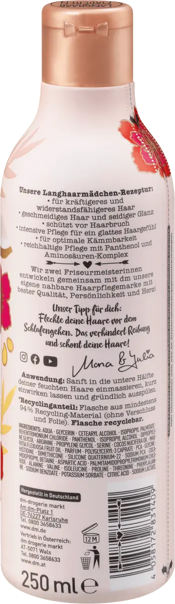 Аккуратно массируйте нижнюю половину влажных волос, оставьте на короткое время и тщательно смойте. Наш совет для вас: заплетайте волосы перед сном. Это предотвращает трение и защищает ваши волосы.