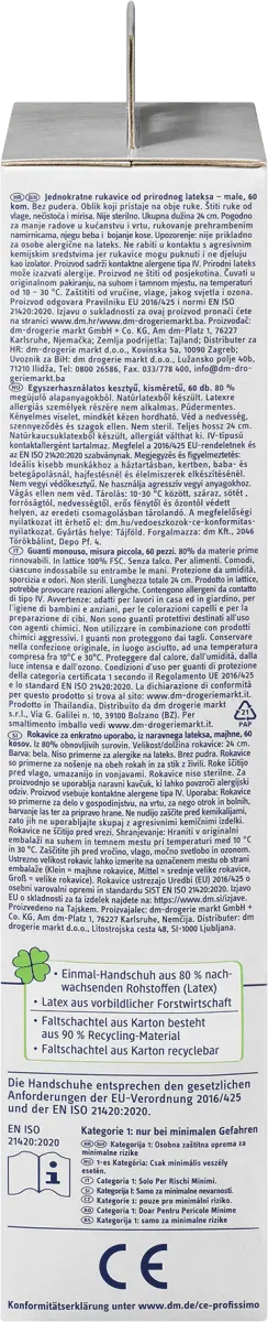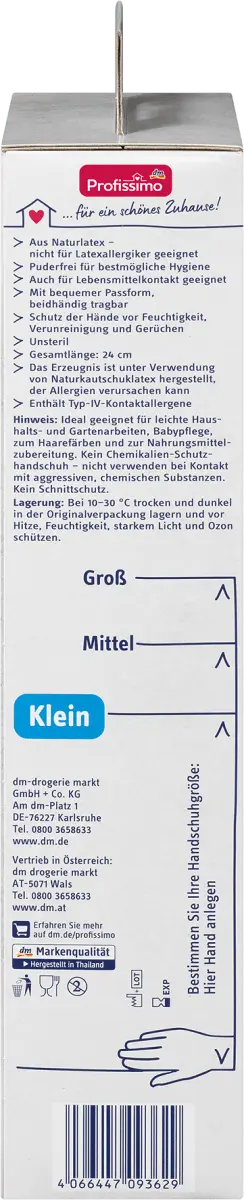 Белые одноразовые перчатки Profissimo из латекса небольшого размера можно носить обеими руками, они не содержат пудры и обеспечивают максимальную гигиену. Они защищают руки от влаги, загрязнений и запахов. Они также пригодны для контакта с пищевыми продуктами и идеально подходят для легких домашних и садовых работ, ухода за детьми, окрашивания волос и приготовления пищи.