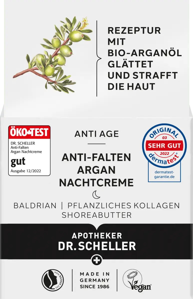 Ночной крем против морщин с арганой от Dr. Scheller – это ночной уход против морщин, активизирующий процесс регенерации кожи практически во время сна. Обеспечивает уменьшение глубины морщин и поддерживает естественное обновление кожи. Растительный коллаген, гиалуроновая кислота и паракресс разглаживают и подтягивают кожу. Концентрированный органический экстракт валерианы, масло шореи и питательные масла также образуют защитную пленку, оказывают увлажняющее действие и придают коже ощущение эластичности. Кроме того, запасы влаги пополняются, и кожа комфортно восстанавливается в течение ночи.