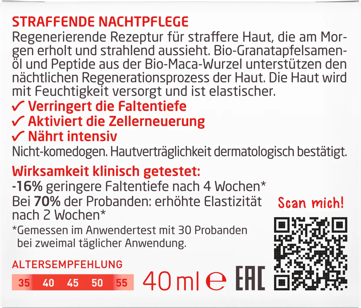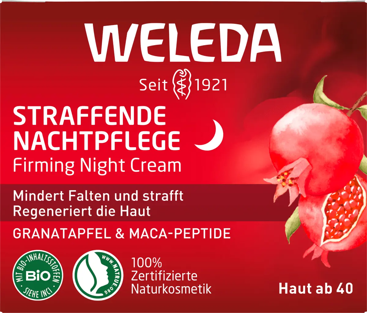 Подтягивающий ночной уход с пептидами граната и мака Weleda обладает регенерирующим действием. Эффект Формула для более упругой кожи, которая по утрам выглядит свежей и сияющей. Органическое масло семян граната и пептиды из органического корня мака поддерживают процесс ночной регенерации кожи. Кожа увлажненная и более эластичная. У 70% испытуемых увеличилась эластичность через 2 недели и на -16% уменьшилась глубина морщин через 4 недели (измерено в пользовательском тесте с 30 испытуемыми при использовании два раза в день)