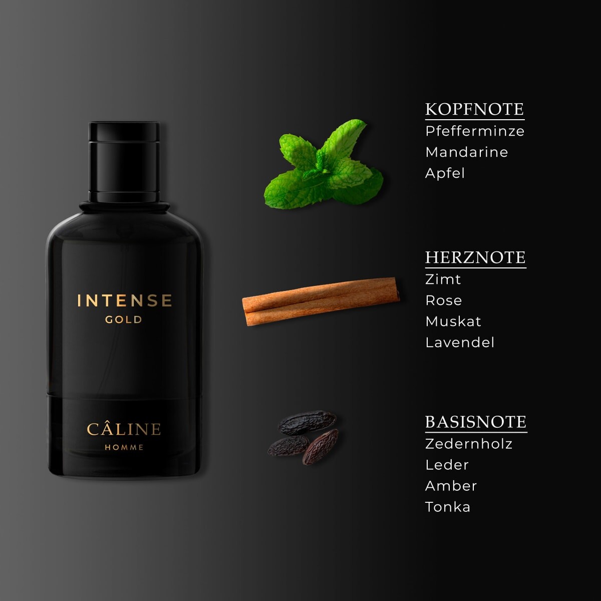 Туалетная вода CÂLINE Homme Intense Gold воплощает в себе чистую страсть, влечение и привлекательность. Свежесть перечной мяты в верхней ноте открывает восточно-мужской аромат. Корица и роза удивляют нежной сладостью в ноте сердца. И в довершение всего, смесь кедра, кожи и ванили растопит сердца каждого. Подчеркните свой неповторимый внешний вид с помощью туалетной воды. Аромат такой же необыкновенный - такой же, как и вы.