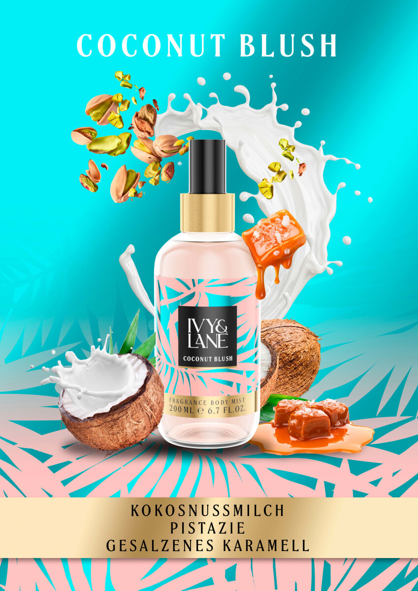Ivy & Lane Coconut Blush Bodymist — это ароматный спрей для тела, который идеально подходит для путешествий. . Спрей оставляет свежий аромат на теле и одежде и подчеркивает ощущение лета.