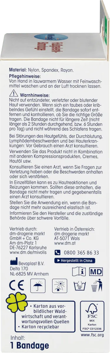 Для непрофессионального использования: Натяните повязку на стопу. Убедитесь, что тканый участок находится прямо на пятке. Рекомендации по уходу: Ручная стирка в теплой воде с мягким моющим средством и дайте высохнуть на воздухе. Информируйте производителя и соответствующий орган о любых серьезных инцидентах. Не используйте на воспаленной, поврежденной или кровоточащей коже. Если вы почувствуете онемение или покалывание, немедленно снимите повязку и убедитесь, что вы носите повязку правильного размера. Не носите повязку в течение длительного времени (не более 2 часов непрерывно или 6 часов в день) или во время сна. Если у вас есть проблемы с чувствительностью кожи, кровообращением, симптомами лимфедемы и кожными заболеваниями: перед использованием проконсультируйтесь с врачом. Не используйте изделие в сочетании с другими компрессионными средствами, кремами, маслами для кожи и т. д. Проконсультируйтесь с врачом, если у вас есть какие-либо вопросы по поводу травмы или если дискомфорт сохраняется или усиливается. В отдельных случаях могут возникнуть кожные реакции и раздражение. Если они сохраняются, прекратите носить повязку и при необходимости обратитесь к врачу. Прекратите использование, если повязка перестает быть достаточно эластичной.