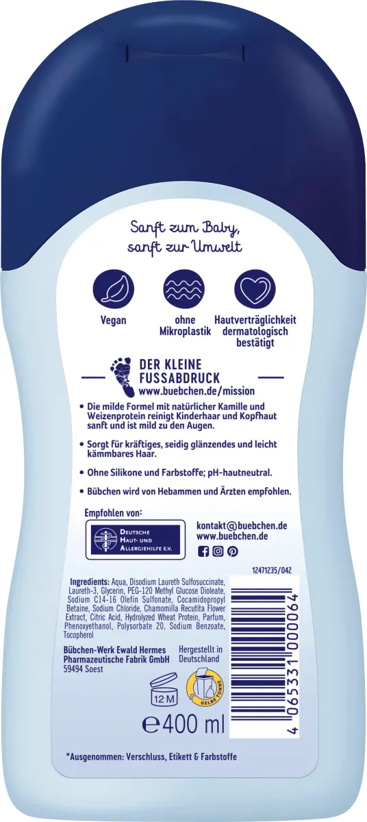 Благодаря детскому шампуню от Bübchen более чем 60-летний опыт компании снова стал Средство по уходу за нежной детской кожей. Он мягко очищает волосы и увлажняет, защищая чувствительную кожу головы вашего ребенка от высыхания. Потому что интенсивные исследования, лучшее качество и тщательный отбор натуральных ингредиентов - это обещание Bübchen вам и вашему ребенку.