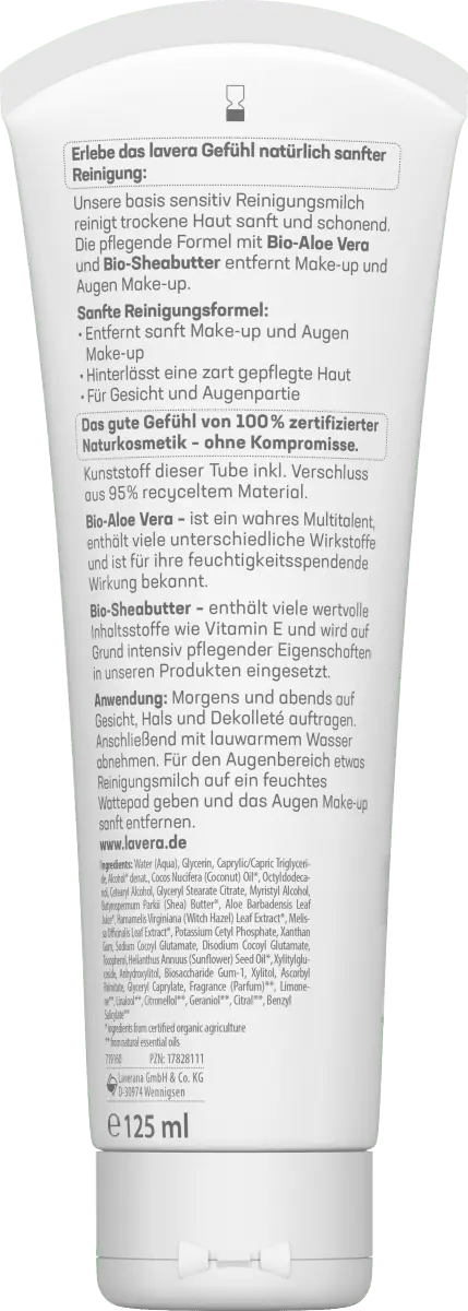 На основе очищающего молочка lavera. Чувствительные вы испытываете ощущение естественного очищения. Гель для умывания состоит из органического алоэ вера и органического масла ши и одновременно мягко и тщательно очищает сухую кожу. Благодаря своей формуле он не сушит кожу и оставляет ощущение мягкости.