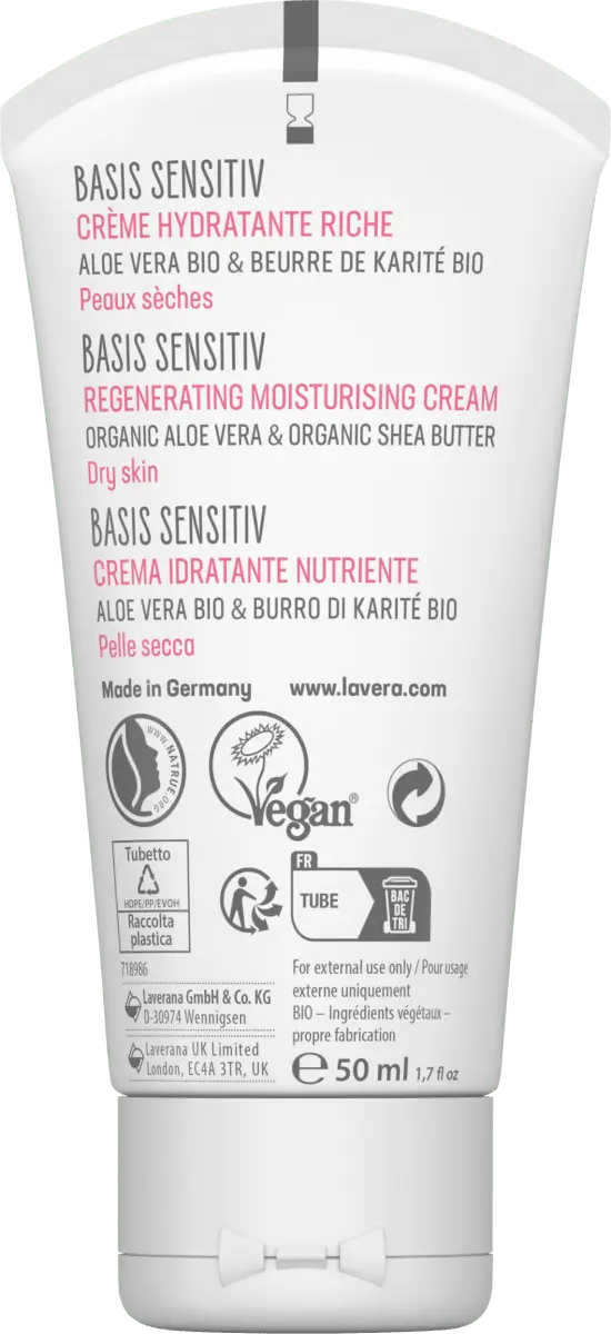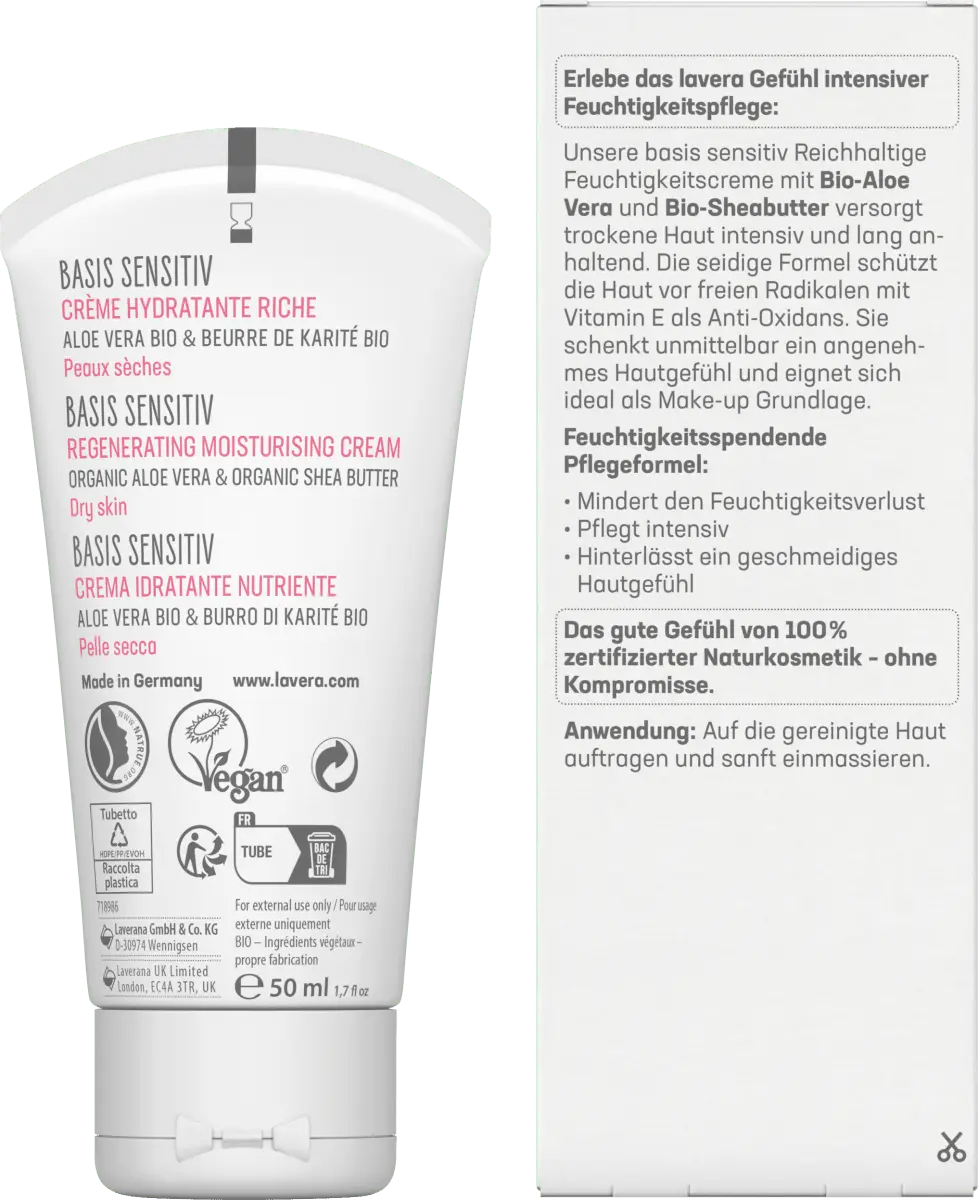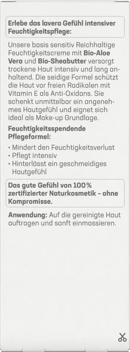 >Благодаря насыщенной увлажняющей кремовой основе Lavera Вы испытаете деликатное ощущение естественного ухода. Крем содержит органическое алоэ вера и органическое жожоба и, таким образом, обеспечивает нормальную и комбинированную кожу оптимальным увлажнением. Его легкая формула поддерживает естественный баланс вашей кожи и защищает ее от свободных радикалов. Поскольку крем быстро впитывается, он также идеален в качестве основы под макияж.