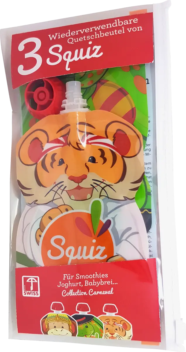 br> С многоразовыми пакетиками Squiz в упаковке по 3 штуки вы сами решаете, что будет в меню вашего ребенка. Потому что вы можете наполнить их по своему желанию или даже запастись в морозилке. Чтобы они всегда были у вас под рукой. Сжимаемые сумки небьющиеся, компактные и легкие, что делает их идеальными для путешествий. Благодаря запатентованному механизму двойного давления они остаются чрезвычайно плотными.