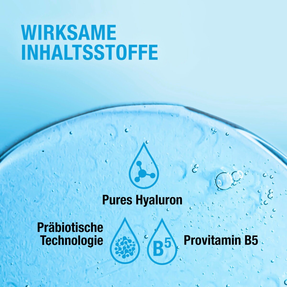 Содержит 2 формы гиалуроновой кислоты с провитамином B5 и пребиотической технологией