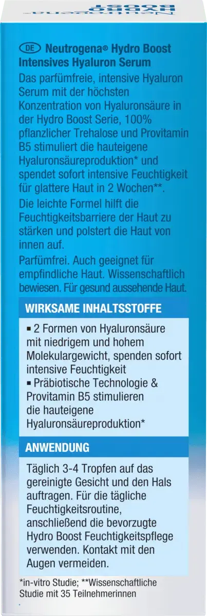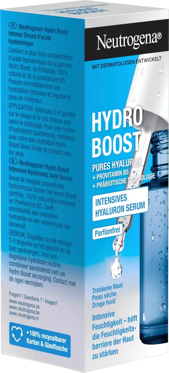 Гиалуроновый концентрат Neutrogena Hydro Boost стимулирует выработку собственной гиалуроновой кислоты в коже (исследование in vitro) и обеспечивает интенсивное увлажнение кожи, делая ее более гладкой всего за 2 недели (научное исследование с участием 35 участников). Гиалуроновый концентрат с самой высокой концентрацией гиалуроновой кислоты в серии Hydro Boost, 100% трегалозой растительного происхождения и провитамином B5 мгновенно обеспечивает интенсивное увлажнение и уплотняет кожу изнутри. Легкая формула без отдушек помогает укрепить водный барьер кожи, а две формы гиалуроновой кислоты — с низкой и высокой молекулярной массой — обеспечивают мгновенное интенсивное увлажнение. Концентрат для лица разработан совместно с дерматологами и подходит для всех типов кожи, включая чувствительную.