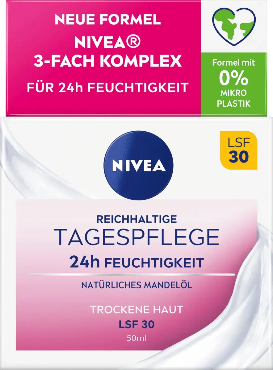 Насыщенное дневное средство NIVEA Essentials с 24-часовым увлажнением и SPF 30 было разработано для интенсивного ухода за сухой кожей. Формула с тройным комплексом NIVEA и натуральным миндальным маслом обеспечивает увлажнение на срок до 24 часов и, таким образом, балансирует естественную влажность кожи. Крем интенсивно питает кожу, делая ее мягкой и защищая от внешних воздействий. Благодаря SPF 30 дневной уход также защищает вашу кожу от фотостарения.