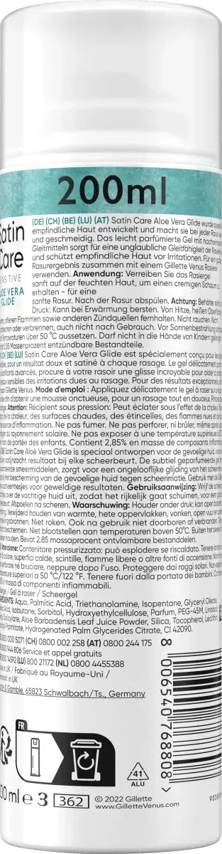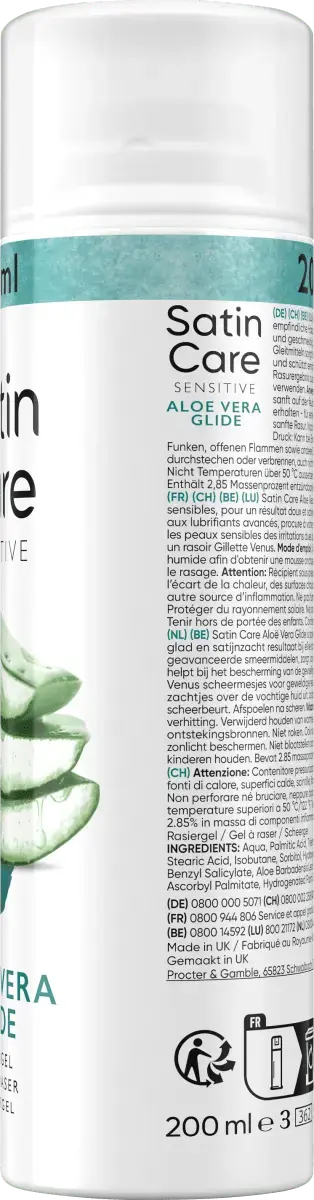 Гель для бритья Gillette Satin Care Sensitive с алоэ вера был специально разработан для чувствительной кожи и обеспечивает шелковистую, мягкую и гладкую кожу при каждом бритье. Гель с легким ароматом и высокоразвитыми смазочными веществами обеспечивает невероятно легкое скольжение бритвы, защищая чувствительную кожу от раздражения.