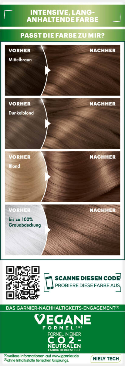 Накройте одежду старой тканью. полотенце, наденьте одноразовые перчатки и смешайте краску в прилагаемом флаконе согласно инструкции по применению. Теперь нанесите готовую смесь прямо на сухие волосы по пробору и распределите пальцами от корней. Дайте цвету подействовать, а затем смойте теплой водой. Нанесите средство по уходу и снова смойте через 2 минуты.